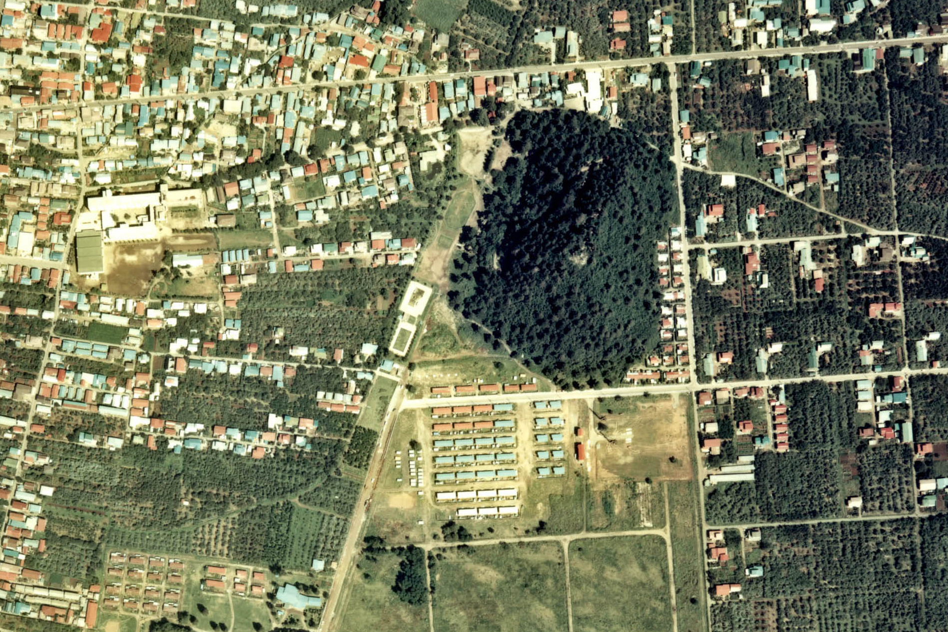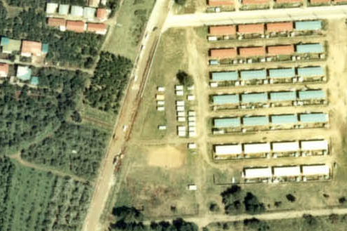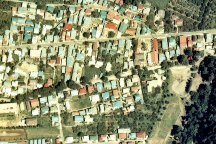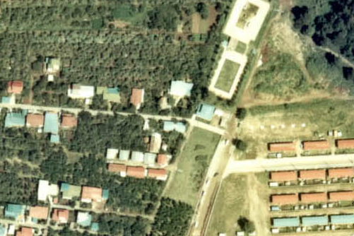 私の住んでいたのは写真の真ん中辺り、赤と青と白のペンキで塗り分けられた小さな自衛隊官舎のうちの一つです。