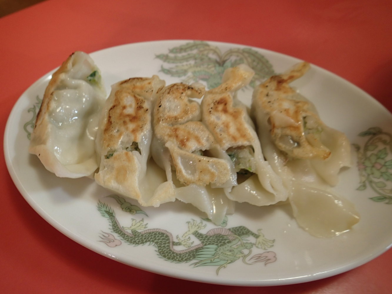 ちょっと皮破けてますが、気にしない。手作り感あふれる餡が旨い! 神町のこう路と味が似ている餃子です。