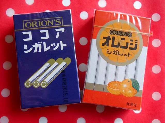 当時、オレンジシガレットは見たことなかったです。ココアシガレットオンリーでした。まあ、値段も高くてあまり買いませんでしたが、大人の真似事をしたくなる時買った記憶がありますw オイシくはなかった。