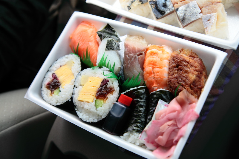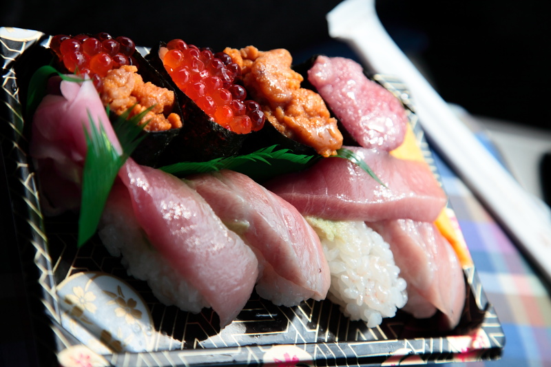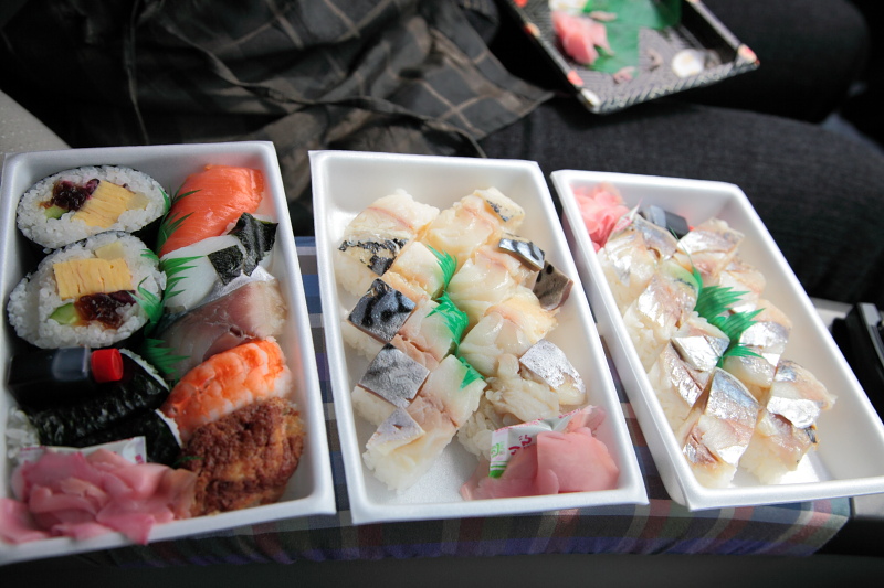 北海道から沖縄までの旨いものフェアー開催中と言う事で、おみやげも秋田にこだわらず沖縄の黒糖など買いました。千葉の鮨仙というところのマグロ寿司が美味そうでお買い上げ。