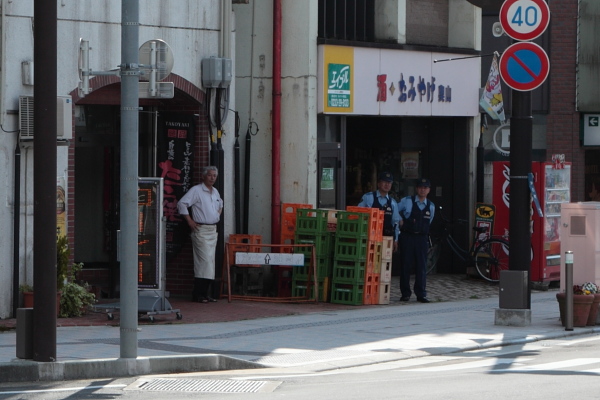 昔はさぞ賑やかであっただろうな、そうだろうな。なんて話をしながら歩いているとおまわりさん達がチラリチラリと僕たちを見ていました。