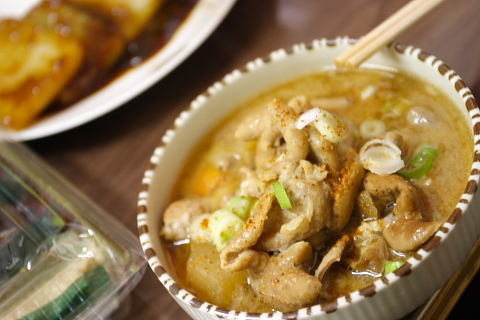 レバーは人気で1本のみしか残っていませんでしたが、サガリは牛肉の肉の味が濃厚で大変美味いです。「ちょう」は腸の事で歯ごたえのある、それでいて固いとも違う、くにゅとした旨さを持ったホルモンの定番で楽しめます。若鶏は味の濃い大振りな肉でこれまたやわらか。
