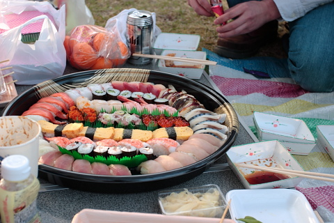 桜はジッと座って15分も見れば飽きます。食い物・飲み物が大事です。