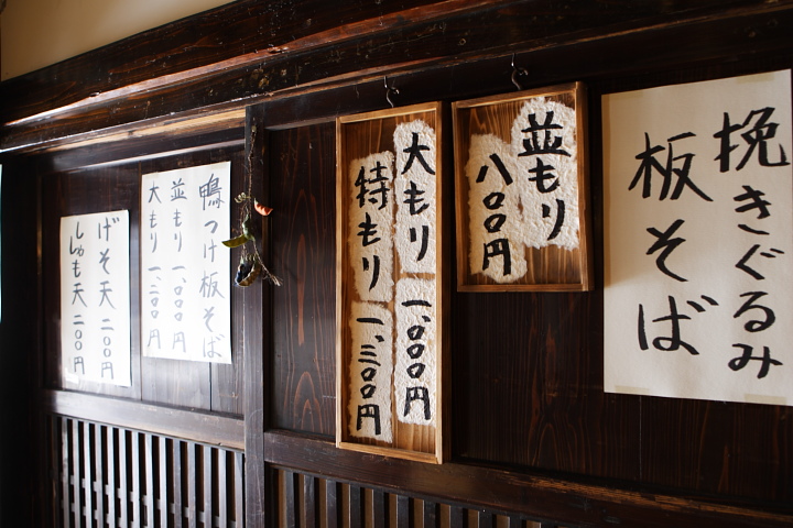 あ、今気が付いたのですが、並もり800円と大盛1000円・特もり1300円の表示は、実際の蕎麦が盛られる板の内に貼ってあります。この大きさから判断しなさいという事ですね。なるほど~