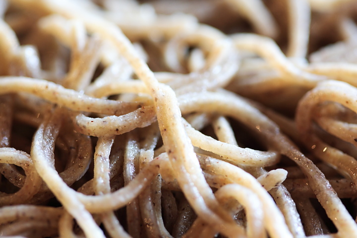 細い蕎麦はあまり好みではない僕。しかし、この蕎麦は違いました。蕎麦に力があり太い田舎蕎麦に匹敵する絶妙な歯ごたえがあります。ボソボソ感は無く、しっとりとしたヌメリさえも感じられます。甘皮も一緒に挽いているので蕎麦の風味が良いのですね。うーん、美味い!! ボリュームも満足!