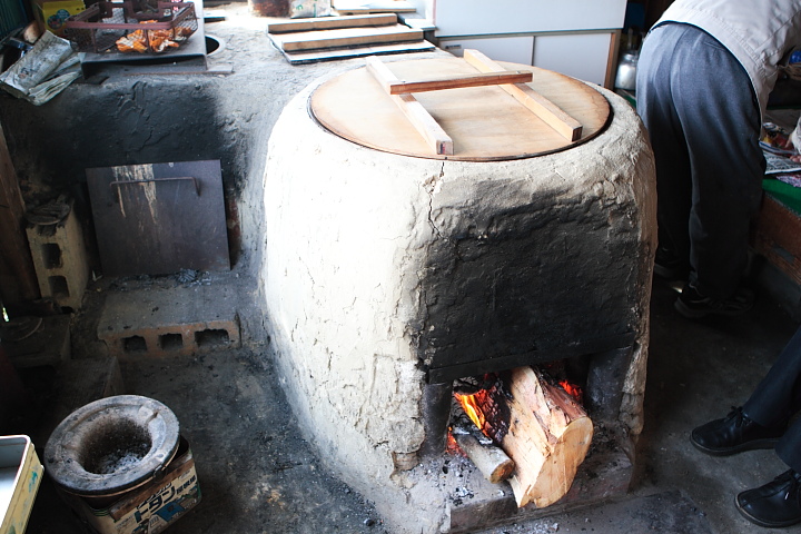 店のど真ん中には巨大な釜があり、バチバチと火が燃えています。