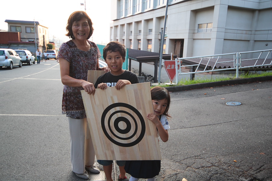当たりの的は希望者にくれるそうです。お守りですね。よかったね。