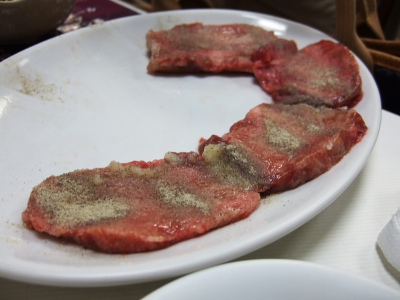 上塩タン。見事に厚い。昔ならもっと安く喰えたんだろうに。狂牛病のバカ・・・・