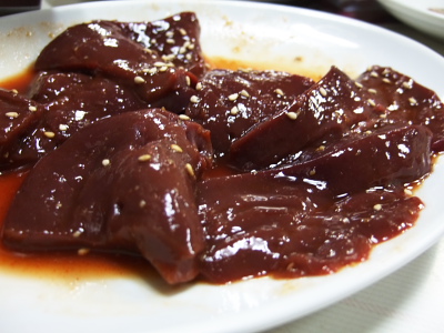 レバー。これまたボリューム満点。生食もいけそうだったがやめといた。