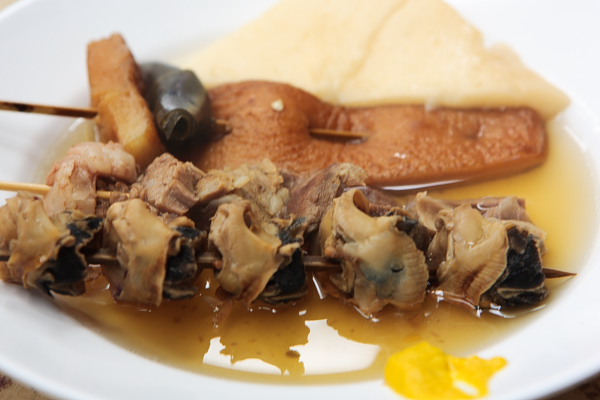 つぶ串・牛すじなどトロトロです。意外に関西風でダシが命のおでんです。